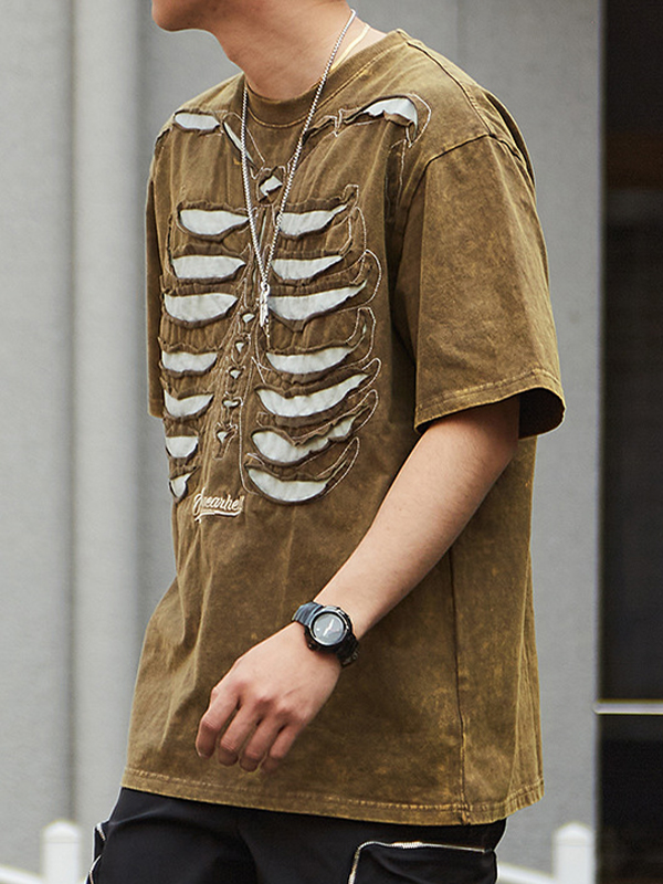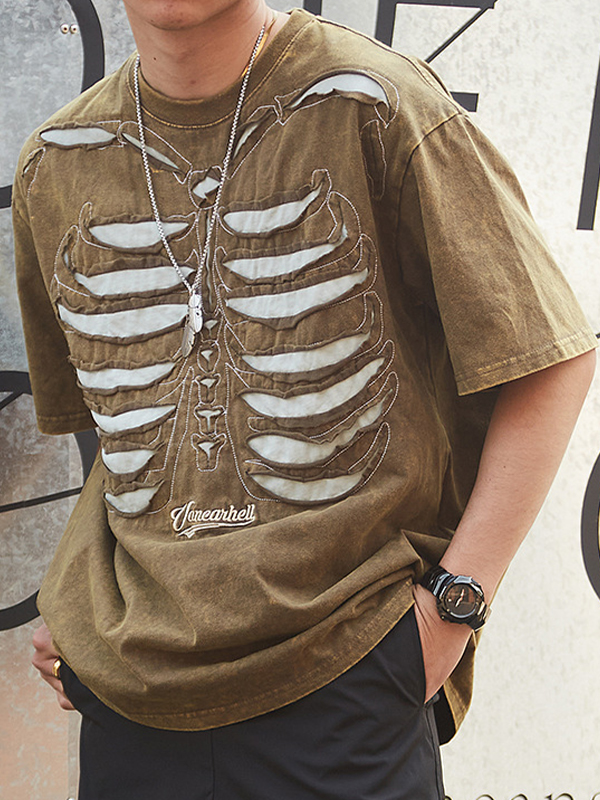 Men’s Skull Print Oversized Short Sleeve Tee – OneDress – Unique Styles for Every Individual