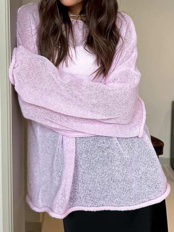 Solid Color Loose Long Sleeve Knits – OneDress – Unique Styles for Every Individual